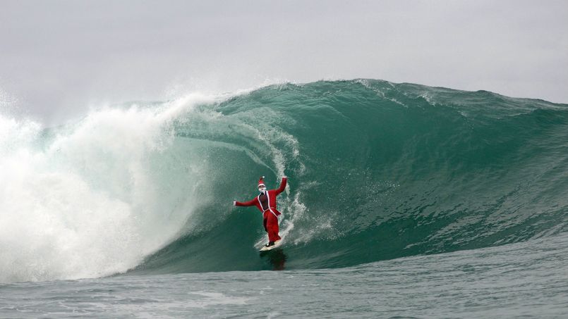 Spanish surfer ASIER MUNIAIN dressed as Surfing Father Christmas-Surfing santa, Galicia coast, SPAIN-19/12/2014 /SIPA_1409.01/Credit:GREG RABEJAC/SIPA/1412231420 *** Local Caption *** 00700652